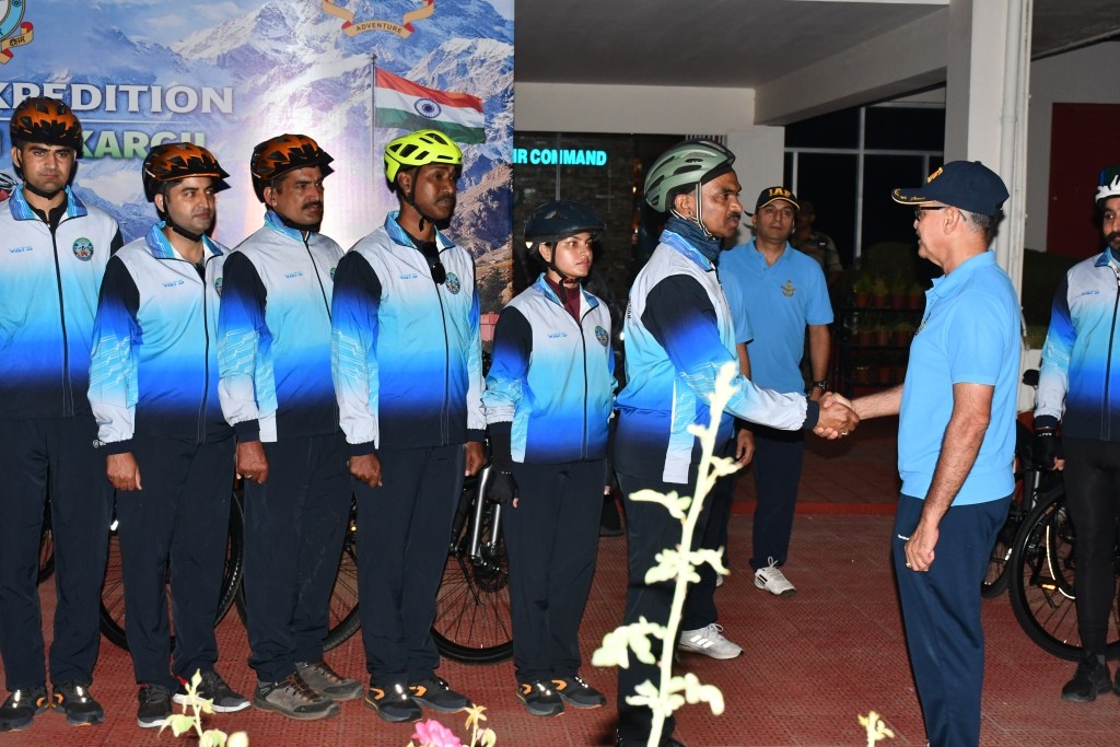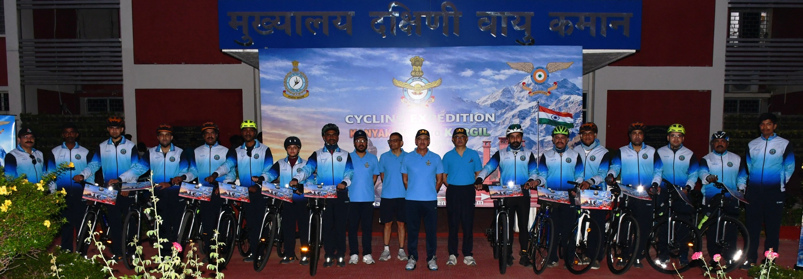ദക്ഷിണ വ്യോമസേനാ മേധാവി എയർ മാർഷൽ മനീഷ് ഖന്ന യാത്ര ഫ്ലാഗ് ഓഫ് ചെയ്തു . വൈവിധ്യം നിറഞ്ഞ ഇന്ത്യൻ ഉപഭൂഖണ്ഡത്തിലൂടെയുള്ള യാത്ര ആവേശകരമാകട്ടെ എന്ന് അദ്ദേഹം ആശംസിച്ചു.