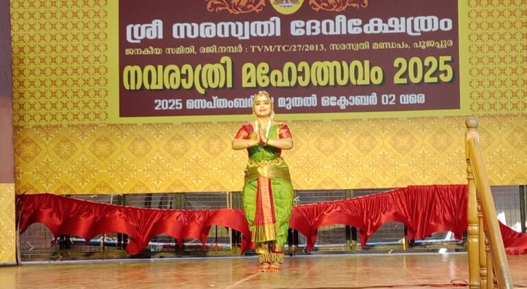 പൂജപ്പുര സരസ്വതി മണ്ഡപത്തിലെ നവരാത്രി മഹോത് സവത്തോട് അനുബന്ധിച്ചു ആരതി സുധാകരൻ അവതരിപ്പിച്ച ഭരത നാട്യം.