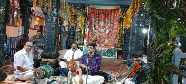 HomeCity Newsപൂജപ്പുര സരസ്വതി മണ്ഡപം ദേവി ക്ഷേത്രത്തിൽ നവരാത്രി സംഗീതോത്സവത്തിൽ ചെ ന്നൈ ആദിത്യ നാരായണൻ സംഗീതക്കച്ചേരി നടത്തുന്നു. വയലിൻ വിവേക് രാജ, മൃദഗം പ്രൊഫ: വൈക്കം വേണുഗോപാൽ, ഘടം പെരുകാവ് പി എൽ സുധീർ.
