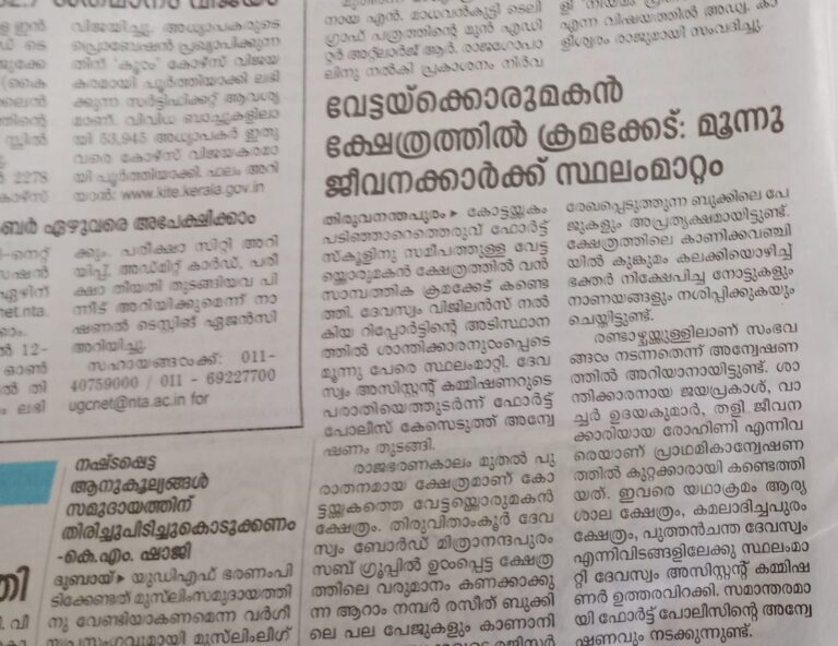 ജയകേസരി ഓൺലൈൻ വാർത്തകൾ “വൻ കിട മാധ്യമങ്ങളും “ഏറ്റെടുക്കുന്നു കോട്ടക്കകം വേട്ടക്കൊരുമകൻ ക്ഷേത്രത്തിലെ വൻ വെട്ടിപ്പ് ആദ്യമായി പുറം ലോകത്തു എത്തിച്ചത് “ജയകേസരി ഓൺലൈൻ “