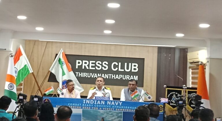 തിരുവനന്തപുരം :- 1971ലെ ഇന്തോ – പാക് യുദ്ധത്തിൽ ശത്രു വിന്റെ നാവിക തീരദേശ പ്രതിരോധത്തിന് നിർണ്ണായക പ്രഹരം ഏൽപ്പിച്ച ഇന്ത്യൻ നാവിക സേനയുടെ നിർണ്ണായക പങ്ക്അനു സ് മരിക്കാൻ ഡിസംബർ 4ന് ശങ്കുമുഖം കടൽ തീരത്തു നാവിക ദിനത്തിൽ മാസ്മരിക പ്രകടനം നടത്തും.നാവിക സേനാ മേധാവി അഡ്മിറൽ ദിനേശ് കെ തൃപ്പാഠി ഈ പരിപാടിക്ക് അതിഥേയത്വവും വഹിക്കും. തിരുവനന്തപുരത്ത് പരിപാടി നടത്തുന്നത് ദക്ഷിണ നാവിക കമാൻഡ് ആണ്. പത്രസമ്മേളനത്തിൽ നേവൽ ഓഫീസർ ഇൻ ചാർജ് കേരളം ക മ ഡോർ വർഗീസ് മാത്യു വിശദീകരിച്ചു. കൊച്ചി പി ആർ ഒ കമാണ്ടർ അതുൽ പിള്ള, തിരുവനന്തപുരം പി ആർ ഒ ബിജു കെ മാത്യു എന്നിവരും പങ്കെടുത്തു.