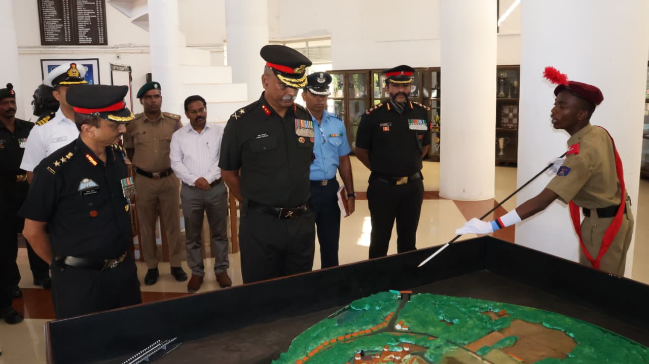 വീരമൃത്യു വരിച്ച ധീരജവാന്മാർക്ക് ആദരാഞ്ജലികൾ അർപ്പിച്ച് മേജർ ജനറൽ രമേശ് ഷൺമുഖം പുഷ്പചക്രം സമർപ്പിച്ചു. തുടർന്ന്, സ്കൂൾ കാമ്പസിന്റെ ലേഔട്ടും പ്രധാന സൗകര്യങ്ങളും എടുത്തുകാണിച്ചുകൊണ്ട്, കാഡറ്റുകൾ വിശദമായ ബ്രീഫിംഗ് അവതരിപ്പിച്ചു.