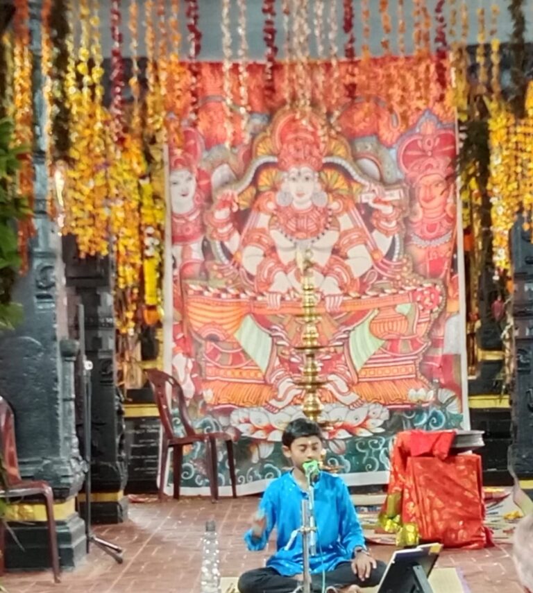 നവരാത്രി മഹോത്സവത്തിന്റെ ആറാം ദിവസം പൂജപ്പുര സരസ്വതി ദേവി ക്ഷേത്രം ശ്രീ സ്വാതി തിരുനാൾ സരസ്വതി മണ്ഡപത്തിൽ മാസ്റ്റർ വേദിക് സായി- അമ്പലംമുക്ക് അവതരിപ്പിച്ച സംഗീതാ ർച്ചന.