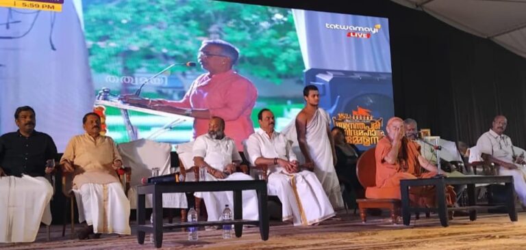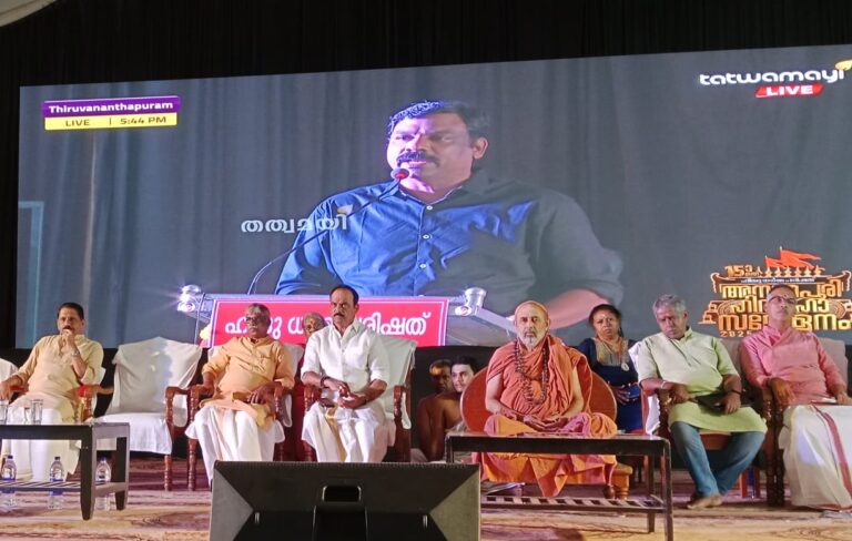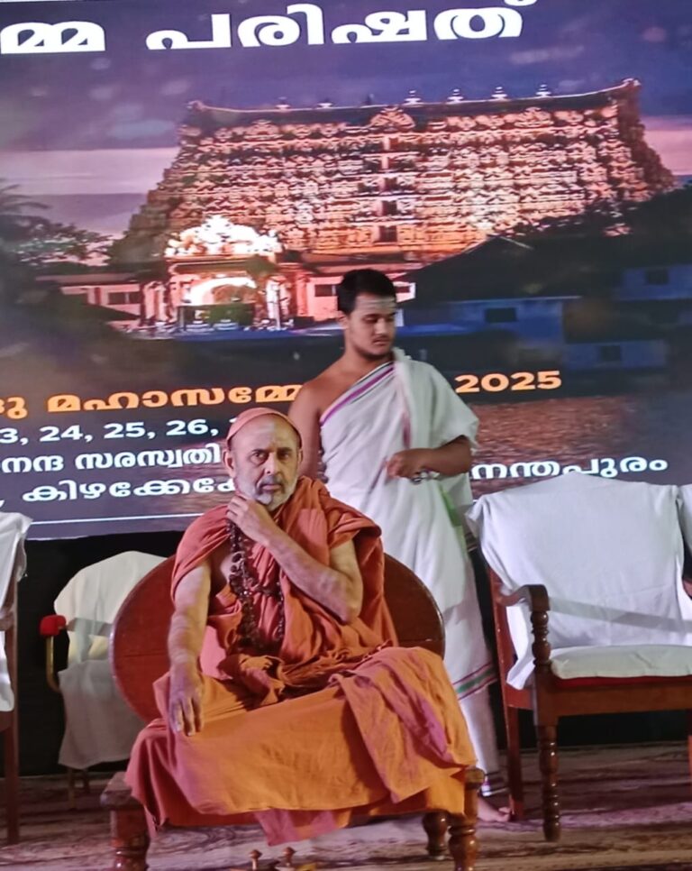 അനന്തപുരിഹിന്ദു മഹാസമ്മേളനത്തിന്റെ സമാപന ദിവസം ആയ 27ന് ശ്രീ ശ്രീ സ്വാമി ശങ്കര ഭാരതി ഭദ്രദീപം തെളിയിച്ചു ഉദ്ഘാടനം ചെയ്യുന്നു. ഹിന്ദു ധർമ്മ പരിഷത്ത് അദ്യക്ഷൻ എം. ഗോപാലിന്റെ ആദ്യക്ഷതയിൽ നടന്ന സമാപന സമ്മേളനത്തിൽ അരുൺ വേലായുധൻ സ്വാഗതം ആശംസിച്ചു. അനുഗ്രഹ പ്രഭാഷണം ശ്രീ ശ്രീ സ്വാമി ശങ്കര ഭാരതി നടത്തി. മുഖ്യ പ്രഭാഷണം ഡോക്ടർ. എൻ ആർ മധു, കെ. സുരേന്ദ്രൻ, ഹിന്ദു ധർമ്മ പരിഷത്ത് ചെയർമാൻ എസ് രാജശേഖരൻ നായർ, എസ് പ്രദീപ് എന്നിവർ സന്നിഹിതരായിരുന്നു.